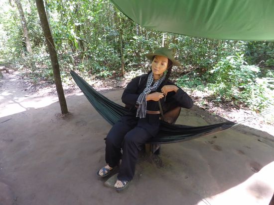 Hier war die Basis des Vietcong. Die Guerilla-Kämpfer wurden in den Dörfern versteckt, sie wurden mit Nahrung versorgt, verarztet und unterstützt. Niemand kannte die ganze unterirdische Anlage. Jeder kannte nur seine eigene Umgebung, es wäre viel zu gefährlich gewesen, wenn jemand mehr gewusst hätte. Nicht vorzustellen, was passiert wäre, wenn ein Wissender in die Hände des Gegners geraten wäre...