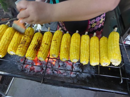 Ich bleibe beim Grill. Die Maiskolben schmecken köstlich.