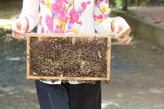 Die Insel Con Lan ist bekannt für ihr tropische Vegetation. Überall in den Gärten entdecken wir Früchte und in einem grösseren Garten erwartet man uns. Hier werden Bienen gezüchtet und exotischer Honig produziert.
