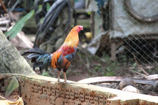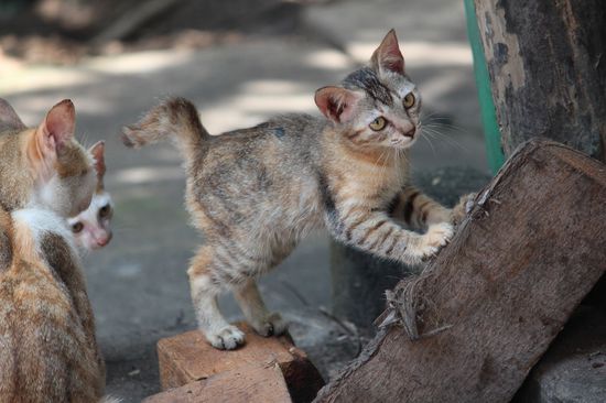 Mich interessiert der Verkaufsstand weniger, darum bin ich im nahen Hof unterwegs, wo es fast mehr Hähne hat, als Hühner. Aber was für Hähne! Ihr Gefieder glänzt und schimmert in allen Farben. Und die drei Kätzchen, die neugierig die Welt entdecken, sind tatsächlich süss.