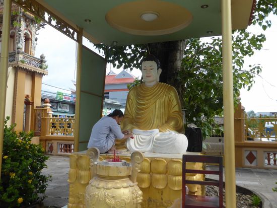 Das gibt MT die Gelegenheit über Religionen zu sprechen. Vietnam hat viele Religionen und auch wenn der Buddhismus die wichtigste ist, so wird er doch nicht ganz strikt befolgt. Karma ist wichtig, an Wiedergeburt wird geglaubt. Es gibt verschiedene Richtungen des Buddhismus, aber auch christliche Religionen und eine ganz kleine islamische Minderheit.