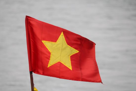 Der Stern symbolisiert die Führung der Kommunistischen Partei Vietnams, die Farbe Rot steht für Erfolg und Revolution, die fünf Zacken stehen für Arbeiter, Bauern, Soldaten, Intellektuelle und die Jugend. (Wikipedia)