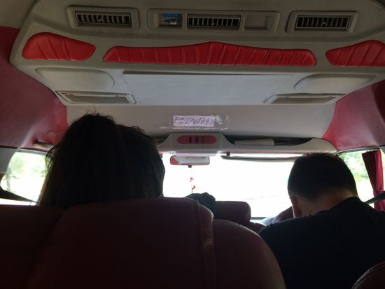 Schade um die fünf Stunden Zeit-Unterschied zur Schweiz. Dort sind jetzt noch alle in den Federn, während ich eingezwängt in dem Minivan einer sechsstündigen Fahrt in den Norden entgegen sehe. Ich poste versuchsweise doch einmal eine Foto von unserem Transporter. Vielleicht kommt eine Reaktion.