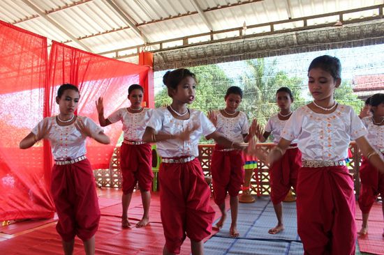 Und so bekomme ich eine wunderschöne Vorführung von kambodschanischen Tänzen. Ein schöner Empfang.