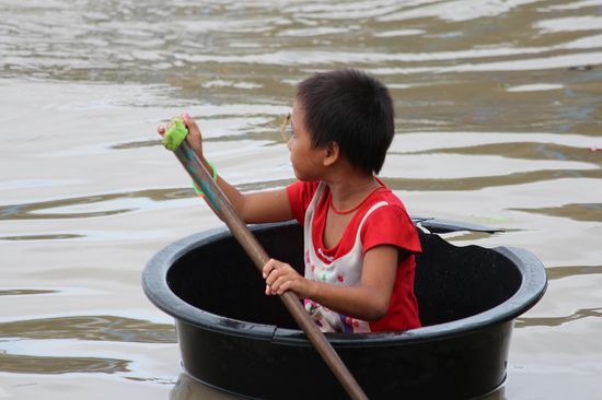 Auf der Bestätigung meiner heutigen Tour stand, dass man Kindern auf gar keinen Fall etwas geben soll, auch nichts abkaufen, denn das würde sie davon abhalten, in die Schule zu gehen. Die Schiffs-Gesellschaft unterstütze aber regelmässig die Schule des schwimmenden Dorfes.