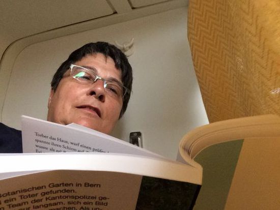 Die Fahrt kann weiter gehen. Ich bin immer noch oben untergebracht, mein Gepäck ist geblieben. Ja, ich hätte mir etwas wärmeres aus der Tasche holen können, aber in der Aufregung hatte ich es ganz vergessen und jetzt nochmals den ganzen Aufwand zu machen stinkt mir. Ich kümmere mich lieber um meinen Toten im botanischen Garten in Bern. Jedenfalls solange das Licht noch an ist, kann ich gut noch ein wenig lesen.