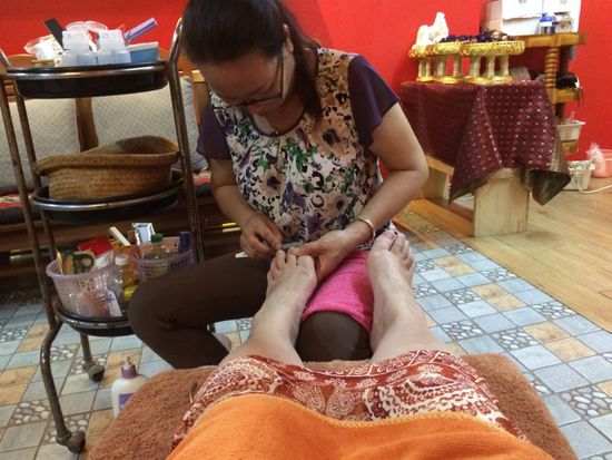Und dann finde ich ein Schild auf dem zu der überall angebotenen Massage auch Pedicure aufgeführt wird und trete ein. Es ist bereits dunkel, als ich wieder herauskomme, denn ich mache eine Rundumerneuerung. Jedenfalls soweit das überhaupt noch möglich ist.