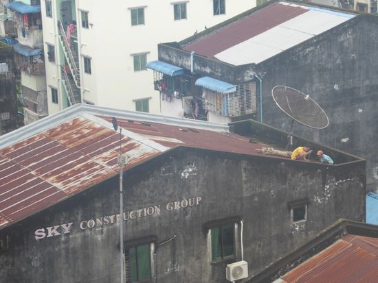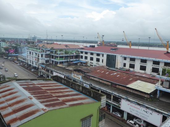 Die Sicht hinaus auf die Stadt ist weniger freundlich. Ziemlich düster, ziemlich verlottert, diese Umgebung. Ich ziehe mich in mein Zimmer zurück, die Berichte von Kambodscha sind noch nicht abgeschlossen und die Stadt läuft mir nicht davon.