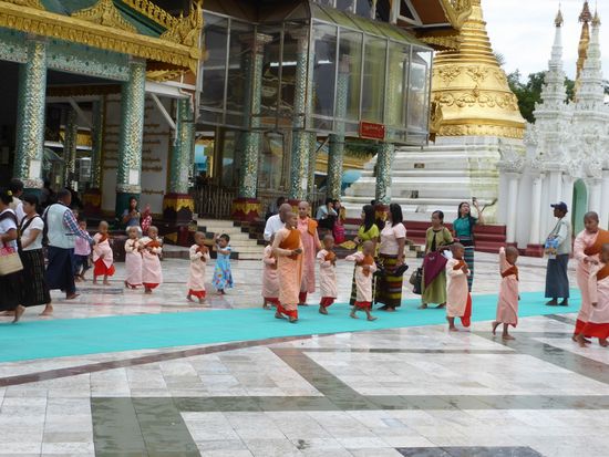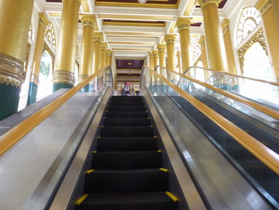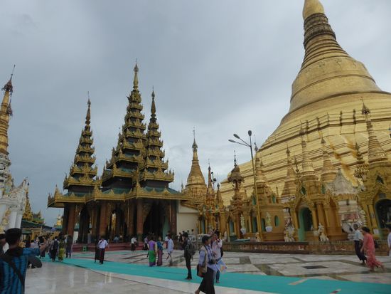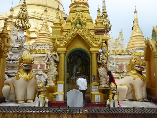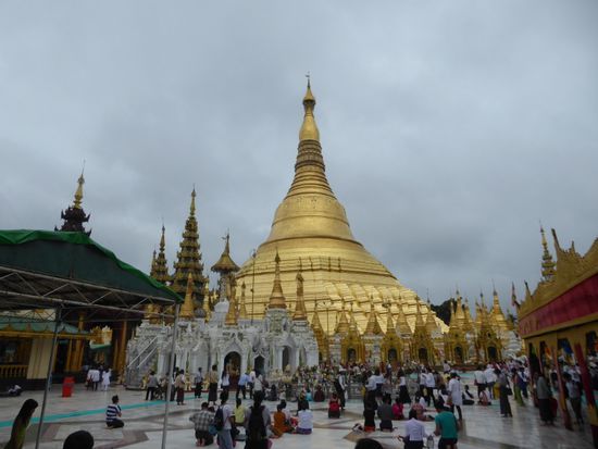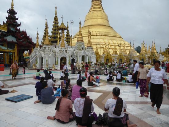 Und dann bin ich oben, trete aus der Halle - und stehe mitten im Gold. Ich hatte sie bereits auf Bildern gesehen, diese riesige Pagode, der wichtigste Ort im ganzen Land.