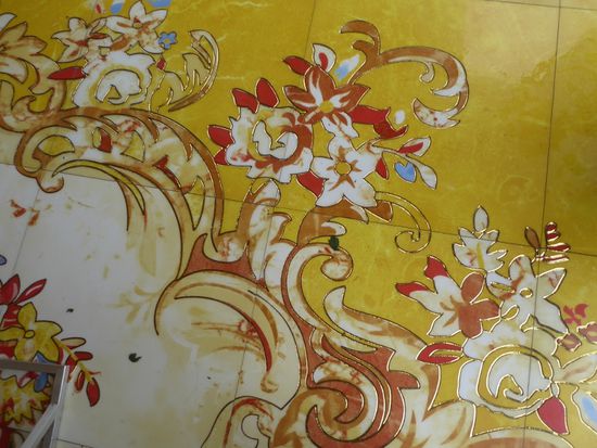 Der Boden ist neu, wurde erst vor kurzem ausgewechselt. Ich weiss nicht, warum die so einen glitschigen Boden gemacht haben. Ich habe schon öfters Leute gesehen, die umgefallen sind.