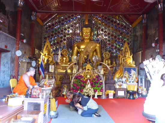 "Wenn ihr aber tatsächlich Glück bringen wollt, dann gebt ihr das Geld nicht dem Buddha, sondern am Ende der Führung mir, das macht mich nämlich richtig glücklich." Leider hat dieser Hinweis nichts geholfen, ich habe am Schluss bemerkt, dass er nicht einen einzigen Bath Trinkgeld bekommen hat. Der Funke ist nicht gesprungen, wir haben ihn alle kaum verstanden.