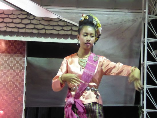 Man holt das Essen ab, besorgt sich irgendwo etwas zu trinken und setzt sich irgendwo an einen freien Tisch. Auf einer kleinen Bühen tanzt eine Gruppe junger Mädchen mit zwei Männern zu einheimischer Musik traditionelle Tänze.
