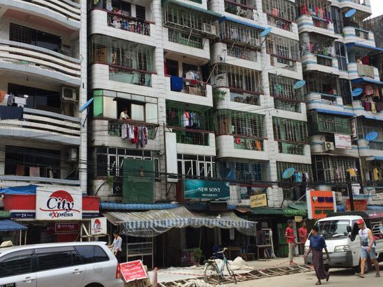 Während wir mitten im Verkehr stecken - mit Motorrädern würde das nicht passieren, da geht es immer irgendwie vorwärts - sehe ich mir die Häuser an. Gestern bin ich an Slums vorbei gefahren. Was ich hier sehe, kommt mir auch wie Slums vor, einfach aufeinander gestapelt. Wie kann man in solchen Wohnungen leben? Wäsche hängt in den vergitterten Balkonen, die Fassaden sind grau, verschimmelt, Fensterscheiben zerbrochen, wie das wohl in den Wohnungen aussieht. Und gleich daneben ein moderner Bau, Wand an Wand. Und unten ein Juweliergeschäft.