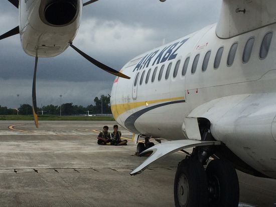 Es gibt eine Zwischenlandung, zum Glück hat mich Anni darauf aufmerksam gemacht. Wer weiss, ob man mich gehindert hätte auszusteigen und auf meine Frage, ob das Bagan sei, vielleicht einfach mit 'yes, yes' geantwortet hätte.