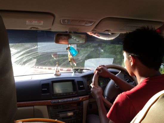 Vor dem Eingang die Taxifahrer. Die Touristen werden zugeteilt. Mein Fahrer ist jung. Sogar sehr jung, ich habe das Gefühl, ich werde von einem Schuljungen gefahren.