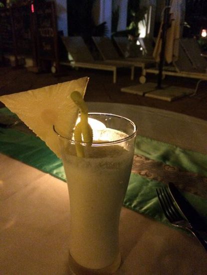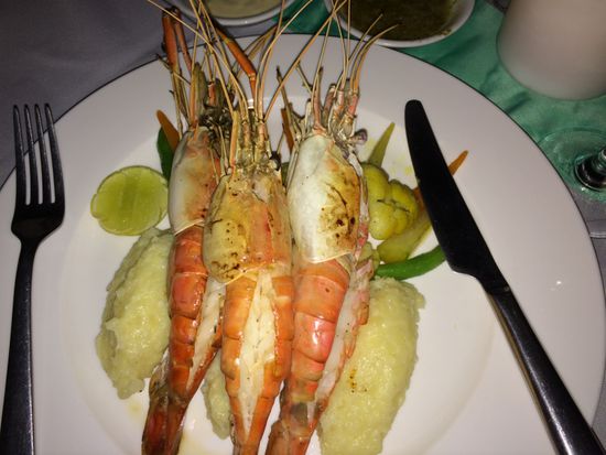 Später gehe ich an die Poolbar, bestelle mir meinen Pinacolada und dann geniesse ich Riesencrevetten. So grosse habe ich noch nie gesehen. Dazu gibt es für einmal keinen Reis sondern gedämpftes Gemüse und Kartoffelstock, klebriger zwar, aber sonst gibt es ja meistens Klebreis. Und dann hat es hier sogar einen Kaffeemaschine und es gibt einen richtigen Espresso.