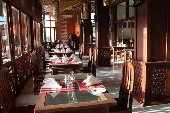 Vier Gäste für ein so grosses Haus. Es ist tatsächlich Low Saison, Nebensaison. Solange ich im Restaurant bin, sind immer zwei Personen da um mich sofort mit einem frischen Fruchtsaft zu verwöhnen, sobald ich bestelle. Kaffee werde ich hingegen nicht mehr bestellen, der war tatsächlich schlecht.