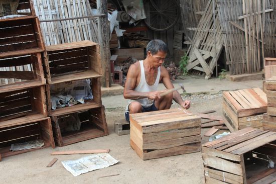 Ein Stapel Holzbretter hinter mir riecht sehr fein. Das muss Sandelwood sein. Die Bretter sind genau richtig um daraus Gemüsekisten zu zimmern.