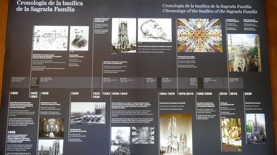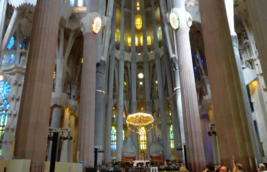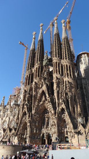 Der Besuch der Sagrada Familia stand heute früh als erstes auf unserem Programm. Seit 7. 11. 2010 darf sich diese Kirche Basilika nennen, da sie von Papst Benedikt XVI an diesem Tag geweiht wurde. Noch immer ist sie nicht vollendet, Gaudi hat von 1883 bis zu seinem Tod in 1926 an seinem Lebenswerk gearbeitet. Nach seinen Plänen wird der weitere Bau bis zum heutigen Tage ausschliesslich von Eintrittsgeldern und Spenden finanziert. In 2026 soll der Bau der Basilika endgültig abgeschlossen sein.