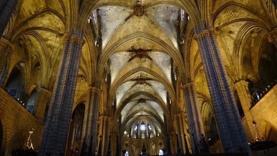 Entlang des Passeig de Gracia sind wir dann bis zur großen "Catedral de la Santa Creu i Santa Eulàlia" gelaufen, die wir uns ausgiebig angesehen haben. Beim Zutritt wird auf entsprechende Kleidung geachtet, schulterfrei, "no go", aber es gibt oben am Eingang Schals zum kleinen Preis zu kaufen.