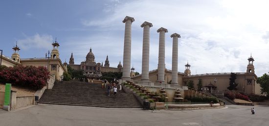 Auf dem Rückweg haben wir noch eine Pause am Placa de Espanya gemacht, da ich noch unbedingt Fotos vom "Palau Nacional", einem Museum, machen wollte. Direkt davor liegt der "Font Màgica", wo an einigen Abenden nach 21 Uhr mit Musik begleitete farbige Wasserspiele stattfinden. Das hatte ich mir zwar fest vorgenommen, da spät noch einmal vom Hotel aus hinzufahren, glaube aber, ich schaffe das nicht, da wir morgen sehr früh aufstehen müssen.