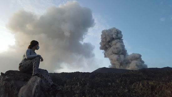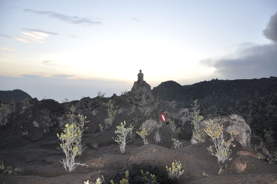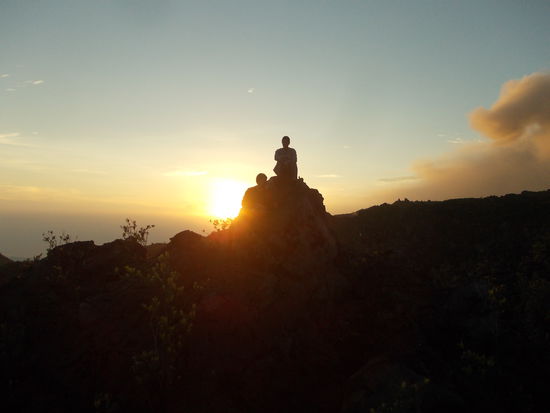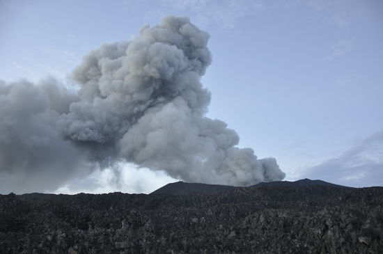 Noch ist es stockdunkel. Alle 5-10 Minuten "spuckt" der Vulkan.