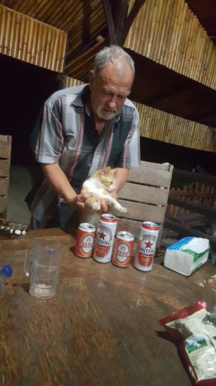 Abends gibt es leckeren gebratenen Reis mit Shrimps und Chicken und Alex kommt wieder mit Gitarre und Palmwein vorbei.