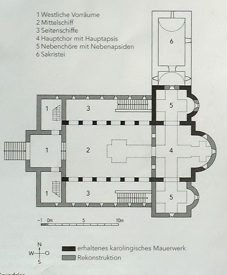 Die dreischiffige Pfeilerbasilika mit Stollenkrypta zählt zu den wenigen Bauten nördlich der Alpen, die noch einen authentischen Eindruck karolingischer Raumkunst vermitteln. Einhard (um 770-840), ein enger Vertrauter Kaiser Karls des Großen, ließ sie zwischen 815 und 826 als Grablege für sich und seine Frau Imma errichten und aus Rom die Gebeine der Heiligen Marcellinus und Petrus beschaffen. Da die Reliquien schon 828 nach Seligenstadt überführt wurden, verlor die Kirche ihre Bedeutung als Pilgerstätte. So blieben ihr Veränderungen und Erneuerungen erspart. Vom 11. bis zum 16. Jahrhundert wurde sie als Klosterkirche genutzt.