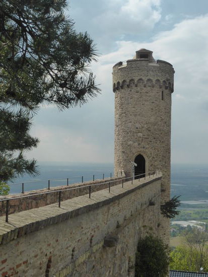 Am Schloß Auerbach geht es dann damit weiter, denn schließlich wollen wir auch vom Turm den Rundumblick genießen. Nachdem wir auf dem Hinweg wegen einer Baustelle dreimal im Kreis gefahren sind, um die Zufahrt zu finden, geht die Strecke nach Lorsch recht schnell trotz Rush-Hour.