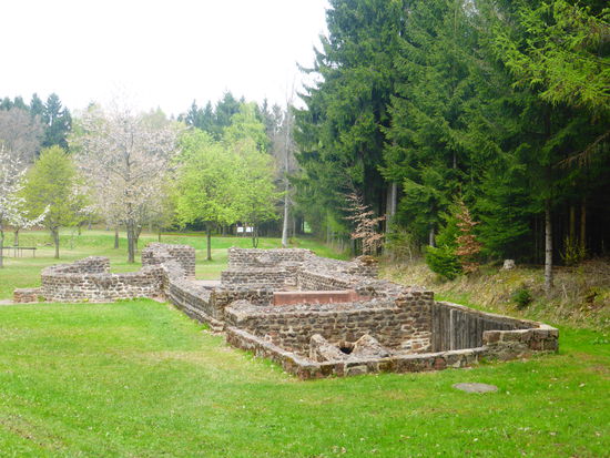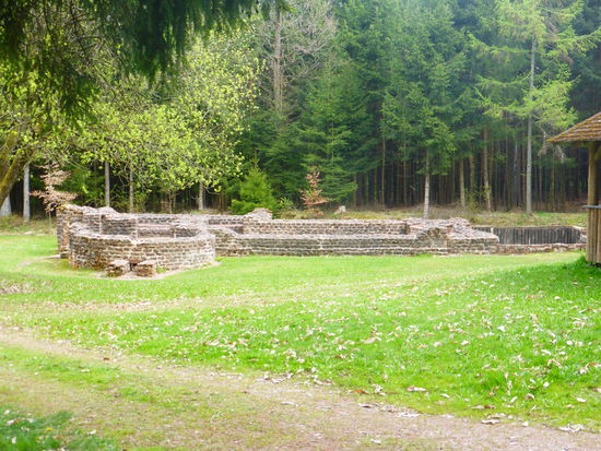 Etwas mehr Schwierigkeiten haben wir dann beim Finden des Römerkastells Michelstadt-Würzberg – wir müssen 1,6 km durch den Wald zu einer Lichtung laufen.
