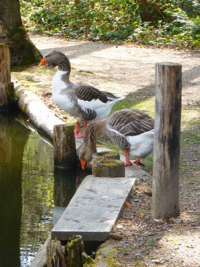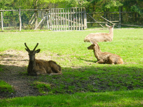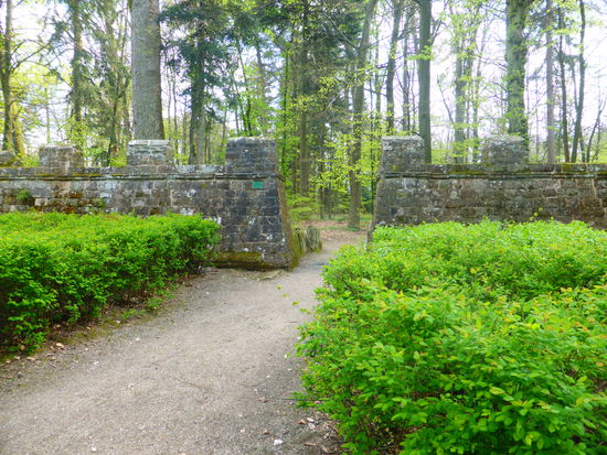 Vorerst letzter Programmpunkt ist dann der englische Garten von Würzberg, der einige römische Bauten enthält, die mit Steinen aus dem Römerbad aufgebaut wurden. Angeschlossen ist auch ein kleiner Tierpark mit Wildschweinen, Bisons, Muflons und Damwild. Der Rundgang gefällt uns sehr.