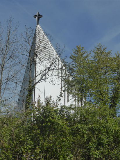 Daneben liegt eine ultramoderne Kirche, deren Architektur mir sehr gefällt.