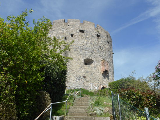 Im Inneren sind heute noch der Wehrgang und die Schießscharten zu erkennen.