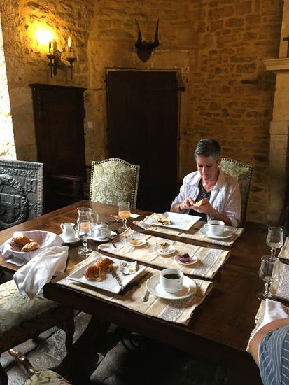 Einiges liest sich etwas ungewohnt - zunächst soll es kein Wlan geben (während unseres Aufenthaltes war es voll verfügbar), dann fehlt in den Zimmern der Fernseher (für uns völlig irrelevant) und eine Minibar (auch das ist nicht von erheblicher Bedeutung für uns). Man akzeptiert nur Cash (keine Kredit- oder EC-Karten), dafür steht das Auto im Hof kostenlos und geschützt. Für Frankreich gibt es ein üppiges Frühstück mit selbst hergestelltem Apfelsaft und verschiedenen Marmeladen aus Eigenproduktion.