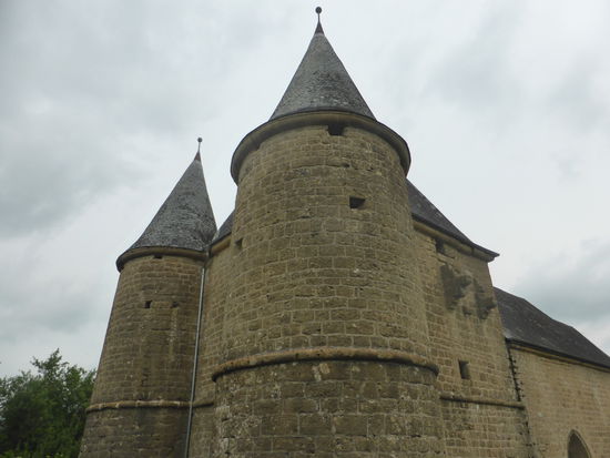 Gleich mit 42 Schießscharten wurde die Kirche Saint Etienne in Servion bestückt. Die Decke ist heute offen. Über eine schmale Wendeltreppe gelangt man in die Zufluchträume des quadratischen Wehrturms. Hier waren Waffenstände und Kasematten, Vorratskammern und Notküchen und sogar der Abort untergebracht. Derweil blökten im Chor Ziegen, Schafe und Kühe.