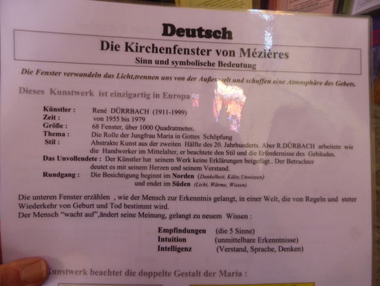 Die 68 gänzlich ungewöhnlichen Verglasungen der gotischen Fenster wurden zwischen 1955 und 1979 von einem Freund Picassos, dem Künstler René Dürrbach geschaffen, von André Seume in Besancon hergestellt.