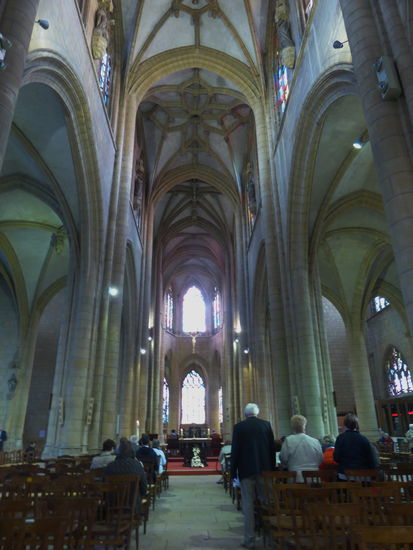 Der Bau der Basilika Notre Dame d'Espérance wurde 1499 begonnen und dauerte 120 Jahre. Die Fundamente und einige Elemente der ersten romanischen Kirche wurden wieder verwendet. Sie besitzt einen einheitlichen Flamboyantstil mit 5 Schiffen. Das Hauptschif ist eng - wegen fehlender Kapitelle wirkt die Kirche höher als sie ist. (18m)