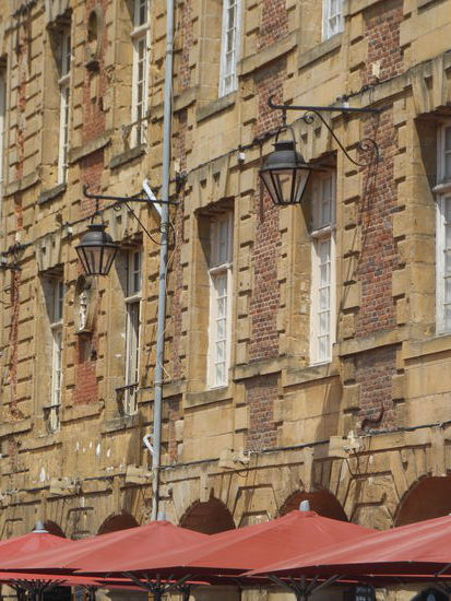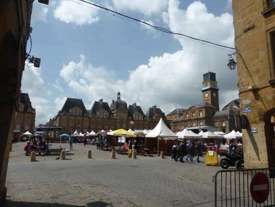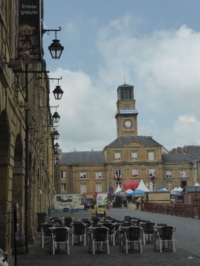 Doch beim Verlassen des Museums sind wir praktisch auf dem Place Ducale - einem der schönsten Plätze Frankreichs (einen ähnlich schönen Platz haben wir in Arras in der Nähe von Lille gesehen). Er ist allerdings heute nicht sonderlich fotogen, da wegen des Festes des Bieres lauter Buden aufgestellt sind und an den anderen Freiflächen LKWs abgestellt sind.