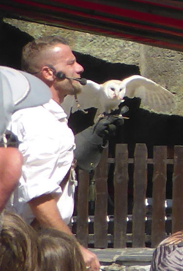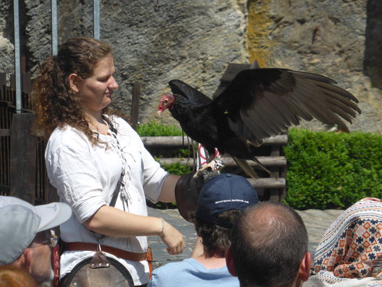Am Ende unseres Rundganges ist gerade die Zeit für eine Greifvogelschau, von der wir uns auch noch einen Teil anschauen.