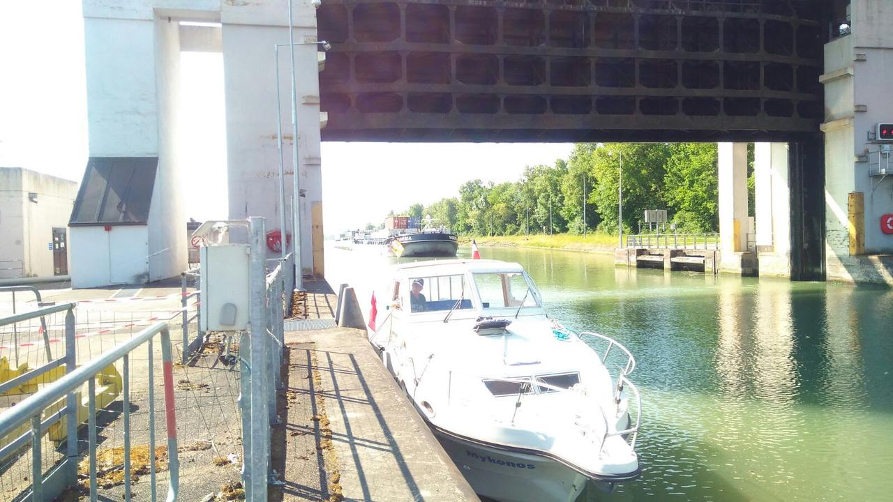 Am Montag waren wir um neun Uhr an der Eingangsschleuse zum Kanalsystem von Strasburg, unmittelbar vor dem Rhein-Marne-Kanal.