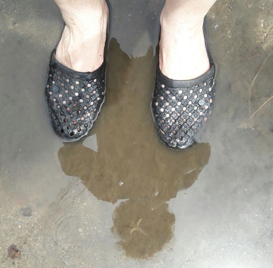 Als Biologin ist man ja vorbelastet, was das Wissen über Bakterien und Parasiten betrifft. Und während ich mich durchs Wasser schreitend dank der Schuhe auch noch selber nass spritze, denke ich beim Laufen unsinnigerweise über den Namen des Parasiten nach, der in Asien in stehenden Gewässern lebt.... Ach, wahrscheinlich gibt's davon nicht nur eine Art. Was soll's! Es ist ja nur Pfützenwasser und nicht stehendes Gewässer...