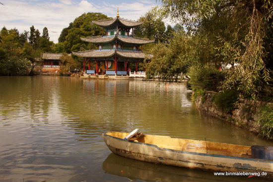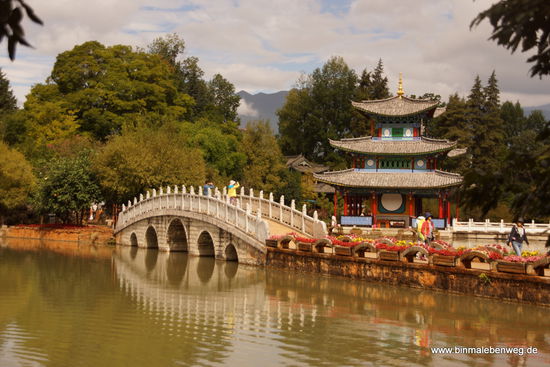 Leider ist es heute diesig, so dass man vom Teich des Schwarzen Drachens den Jadedrachen-Schneeberg leider nicht sieht. Was für Namen! Das Schlendern durch den Park macht aber auch so Spaß! Es gibt viel zu beobachten.