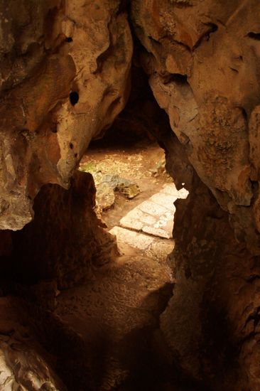 Da es regnet, wirken die Felsen recht trist. Auf der Hinfahrt macht uns der lokale Guide Appetit auf eine Aufführung. Er verschweigt leider, dass bei strömenden Regen noch eine uninteressante Stadtbesichtigung ansteht und unser Abschiedsessen, bevor es direkt ins Theater geht.