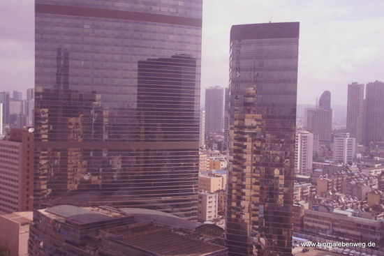 Im 23. Stock erwartet mich im einzigen „revolting restaurant“ von Kunming das Frühstück mit einem tollen Blick auf die Stadt.