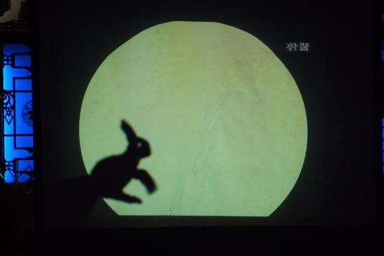 Bei der Aufführung trinkt man Jasmintee mit Untertasse, "damit man sich die Finger nicht verbrennt", Tasse "damit der Tee nicht ausläuft", und Obertasse, "damit die Teeblätter nicht im Mund landen".