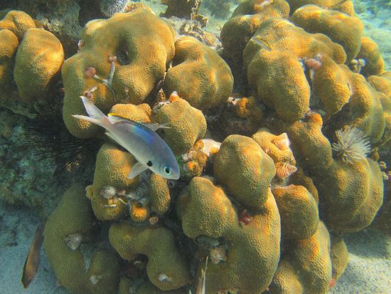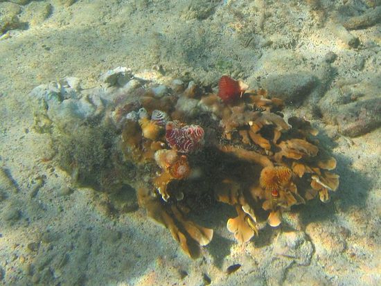 Den späten Nachmittag verbringe ich mit Schnorcheln und Baden in der Caracasbaai. Auffällig sind die farbenprächtigen "Seewürmer" auf den Korallen.