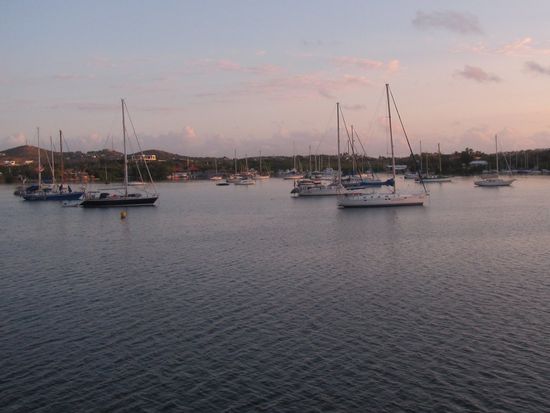 Auch Curacao hat eine kleinere Nachbarinsel. Ein empfehlenswerter Ausflug dorthin geht mit der "Mermaid", weil dieser Touranbieter auf Klein Curacao eine gute Infrastruktur (Duschen, Schatten ...) hat. Es geht schon 6:45 los an der Lagune Spanish Waters, also gar nicht weit von meinem Quartier entfernt. Das frühe Aufstehen wird durch einen schönen Sonnenaufgang belohnt.
