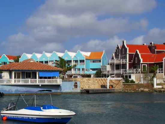 In der Nähe des Airports gibt es eine Lagune, die aus Kanälen zwischen Gebäuden im holländischen Stil besteht, dem Waterlands Village Bonaire. An einer Stelle gibt es einen öffentlichen Zugang zum Wasser für kleine Motorboote o.ä., hierher war ich auch gefahren.