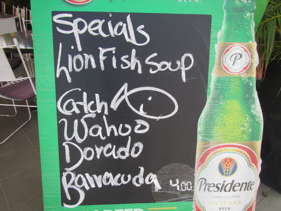 Nun steht ein Stadtrundgang in Kralendiek auf dem Programm. Es liegt gerade kein Kreuzfahrtschiff vor Anker, so ist es sehr ruhig. Ein sehr gutes Lunch bekomme ich in einer Freiluftgaststätte mitten im Ort. Beim "catch of the day" fiel meine Wahl auf Wahoo (ein Fisch mit hawaiianischem Namen).