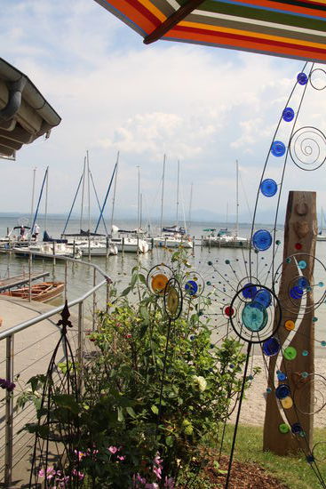 Kunstobjekte sorgen für interessante Blickwinkel - sind hier im Ort auch käuflich zu erwerben.